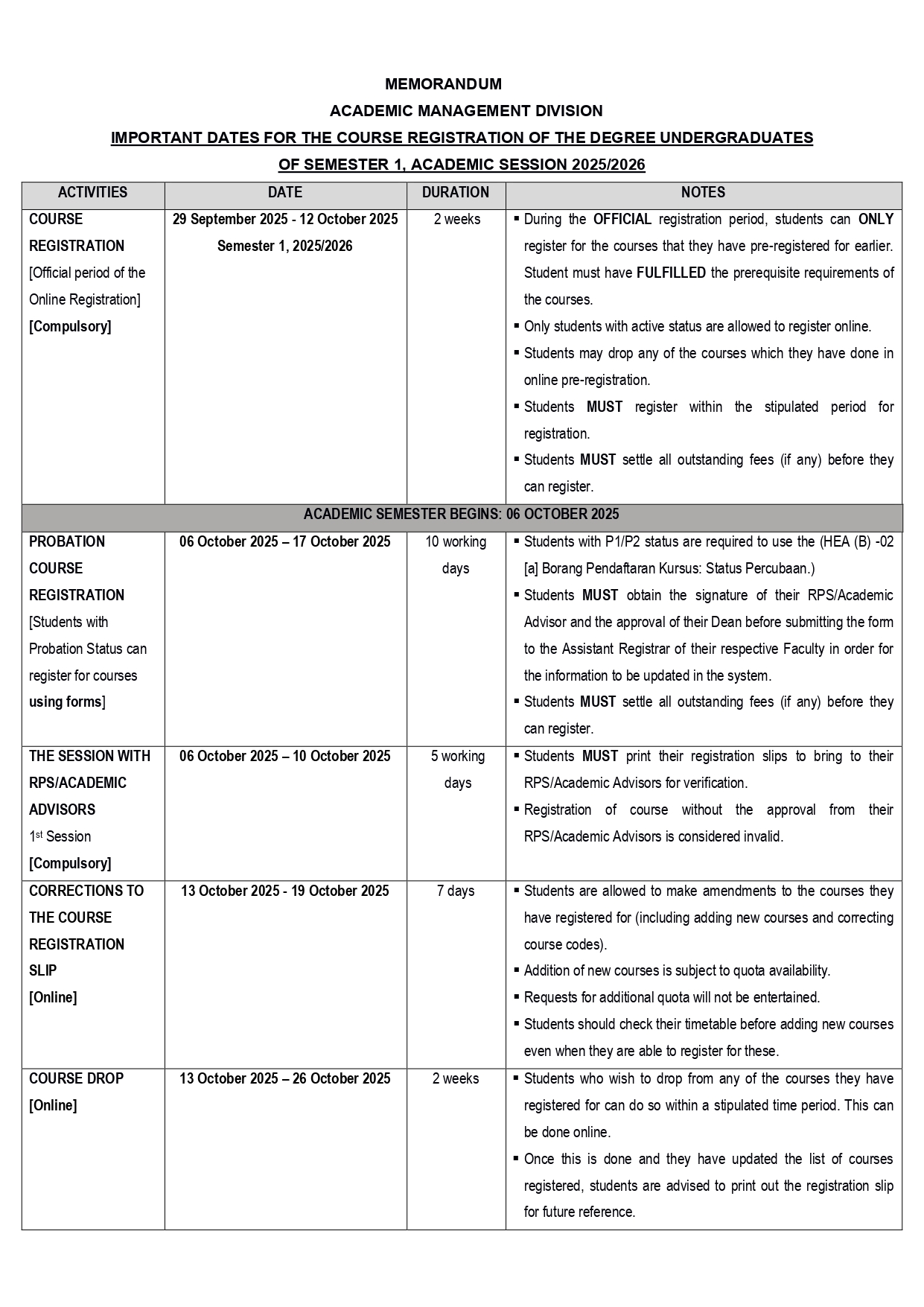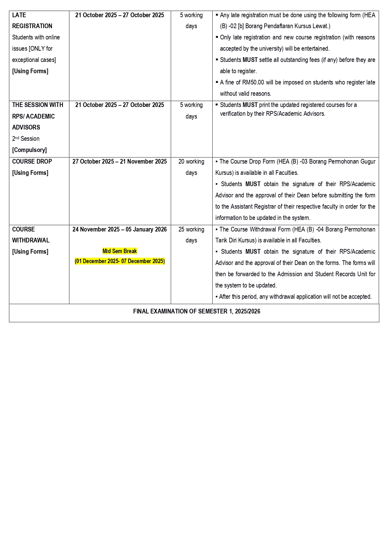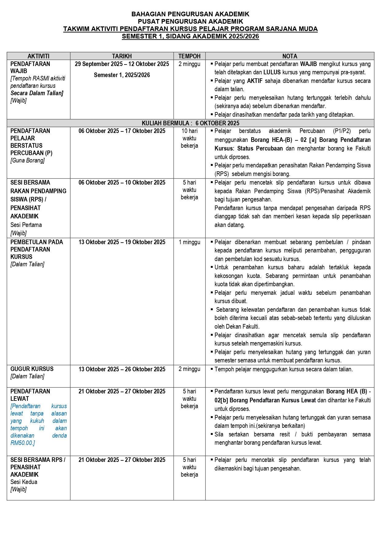 Course Registration Dates