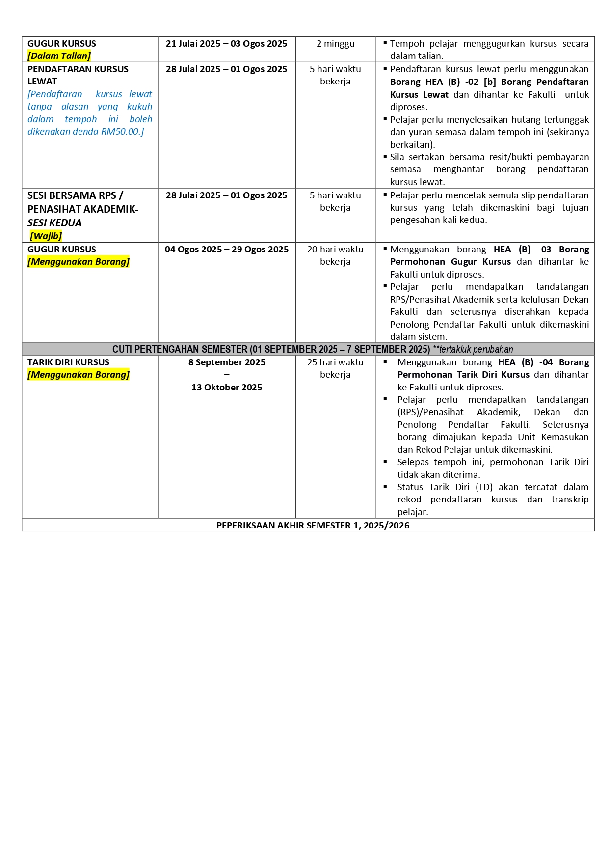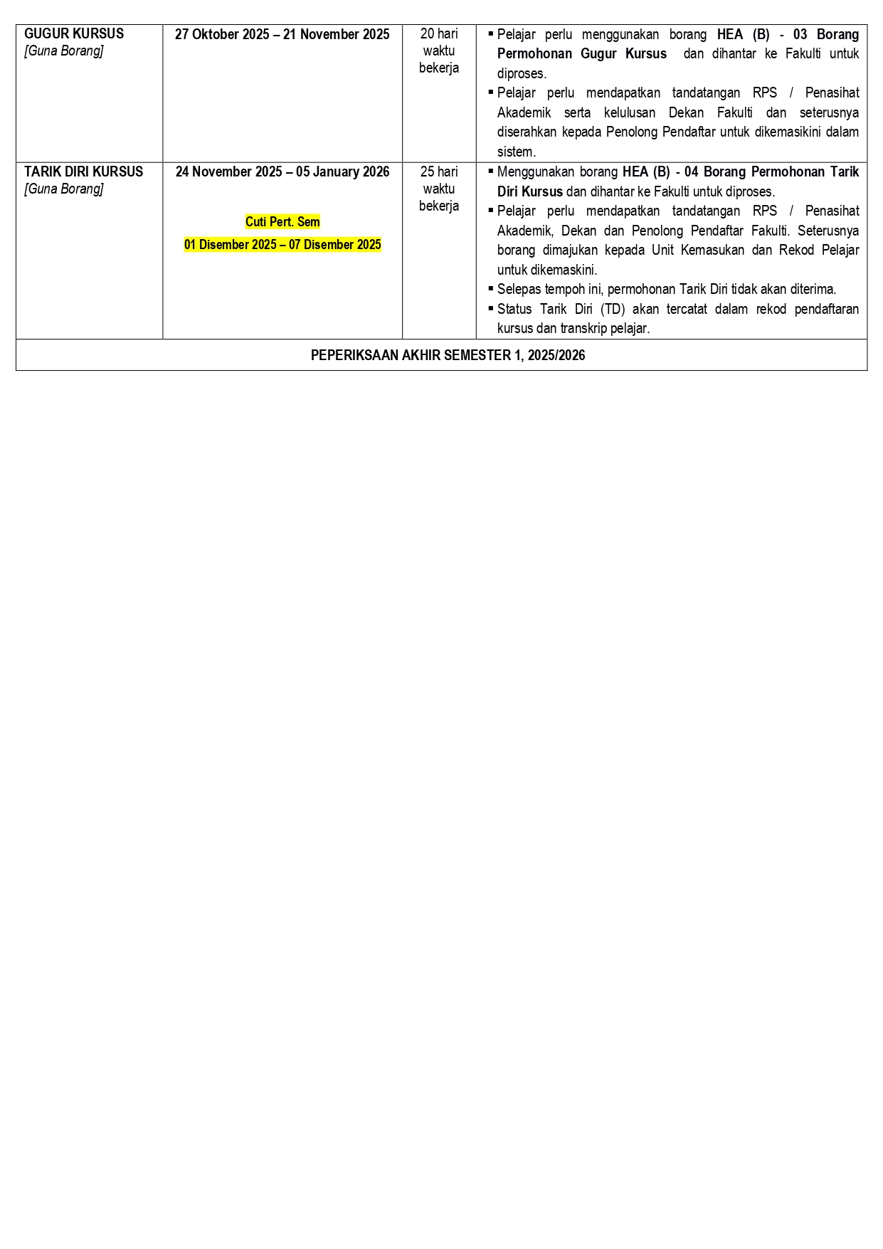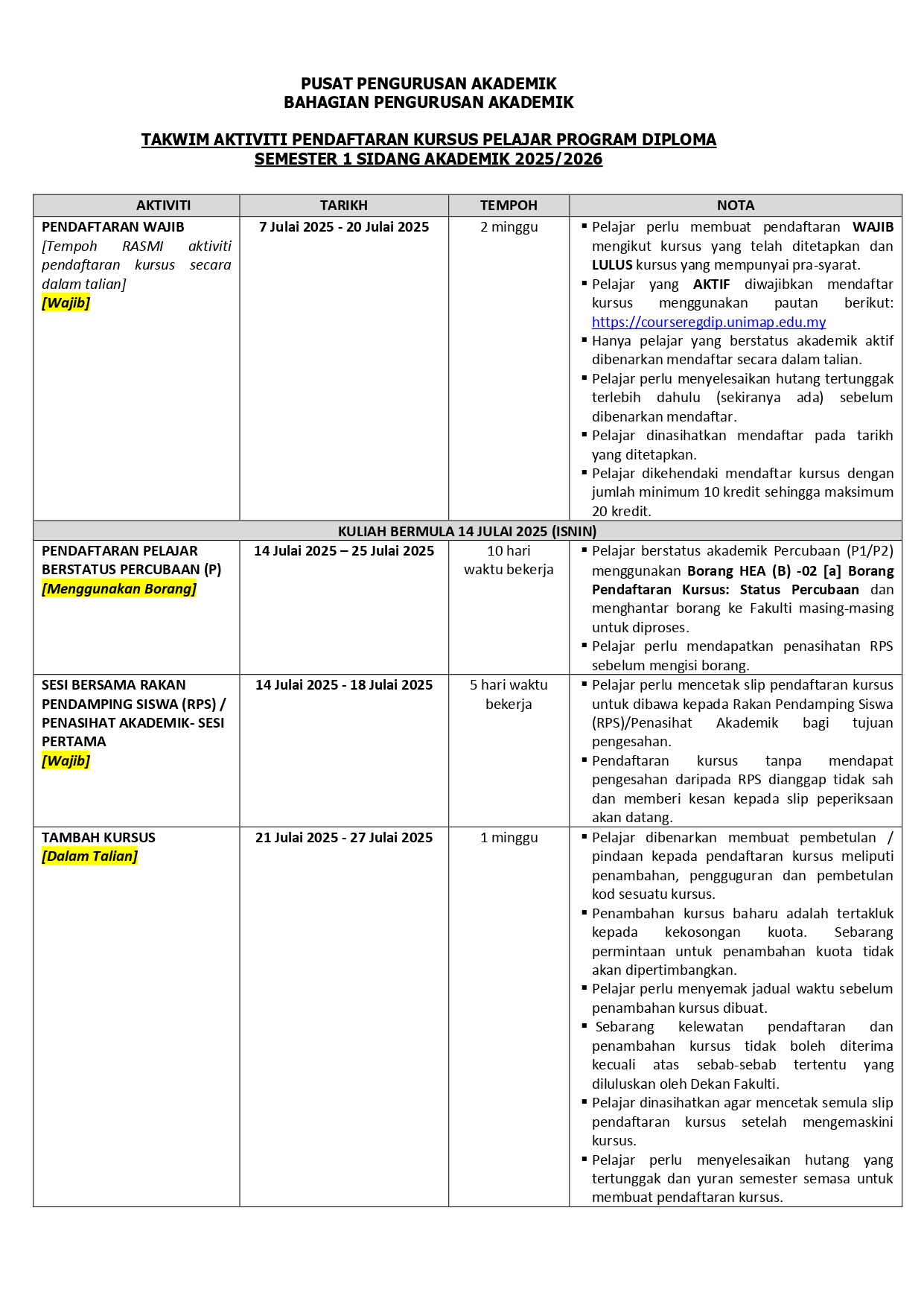 Course Registration Dates